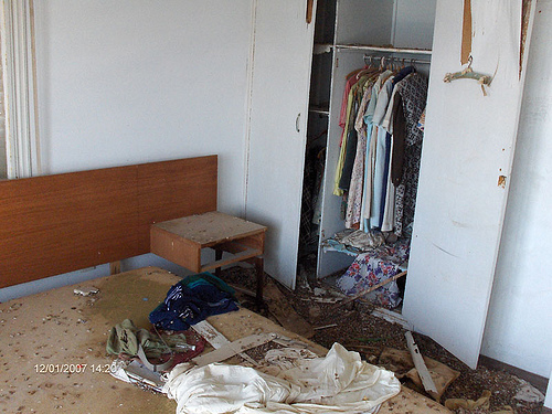 Por el puñado de privilegiados que en los últimos cuarenta años, armados con permisos especiales, han tenido la oportunidad de penetrar en la ciudad fantasma, conocemos interioridades inaccesibles a la vista desde el lado visitable de la reja. Cápsulas del tiempo, como el garaje polvoriento de un concesionario de Toyota entre cuyos pilares, dispuesta en fila, aguarda todavía una partida de Corollas amarillos. Dormitorios revueltos en el fragor de la huida, con camas deshechas que sostienen las revistas, las viejas fotografías y la ropa que no cupo en las maletas cerradas a toda prisa. Mesas con platos a medio comer: los turcos aparecieron a la hora del almuerzo. Calles alfombradas de tejas, de cascotes, de contraventanas de madera aún pintadas de un verde desvaído, de cristales…, caídos de las alturas a lo largo de los años. Un semáforo apagado.